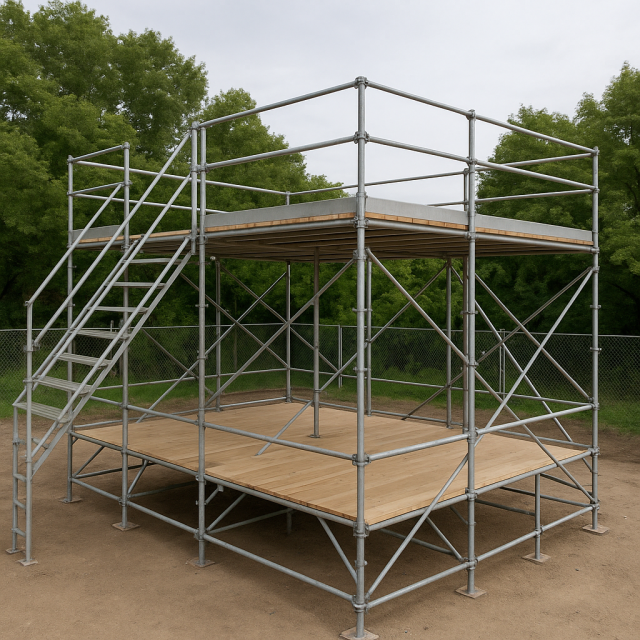 高所での作業台として利用される足場で、安定性と作業効率を重視して設計されます。塗装・補修・設備工事などに活用され、安全かつ快適な作業環境を提供します。